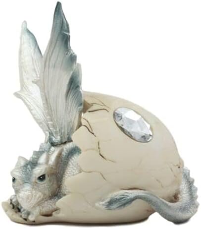 The June Birthstone Dragon Statue is a unique and enchanting piece of home decor, standing at a height of 4 ½" to 5 ¾". Carved with intricate detail and featuring a silver birthstone symbolizing purity and wisdom, this dragon egg statue is perfect for display on a bookshelf or mantel. Made of high-quality materials, it makes a beautiful and meaningful gift for anyone born in June or for those who love mythical creatures.