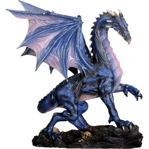 The Midnight Dragon Statue features a black and purple dragon standing on a rock base with skulls. This dragon has its wings spread open for flight. This fantasy statue shows every scale and muscle of the dragon. The Midnight Dragon statue is made of cold cast resin and measures 8 inches high and 7.25 inches long. This dragon statue would also make a wonderful gift for family members or friends for holidays or special occasions.